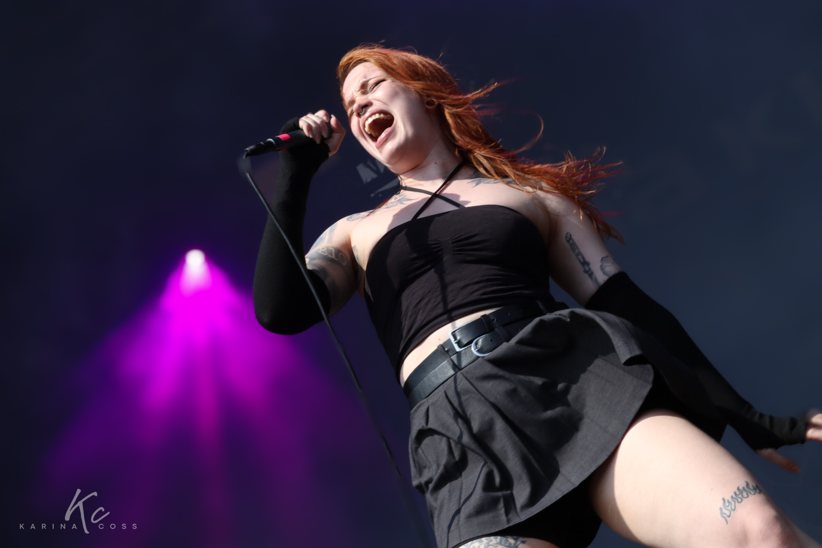 No me sorprendió ver a la vocalista Lotta Ruutiainen irrumpir con una fuerza que poco a poco fue contagiando al público. Su primera invitación a formar un circle pit obtuvo apenas una respuesta tímida, pero cuando lo pidió por segunda vez, la multitud cedió ante la determinación de una voz que impone no solo en el canto, sino también en la manera de comandar a la audiencia.