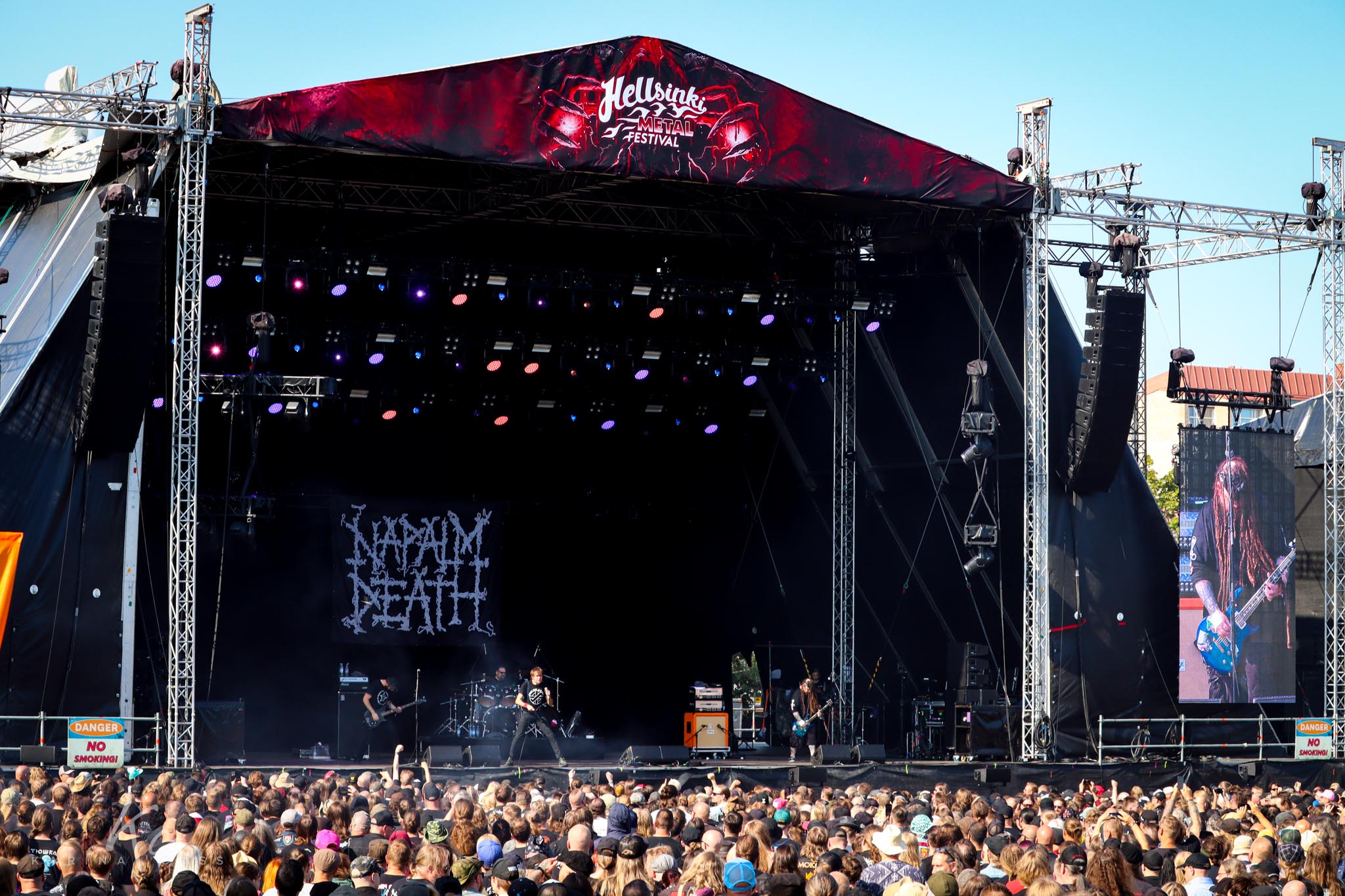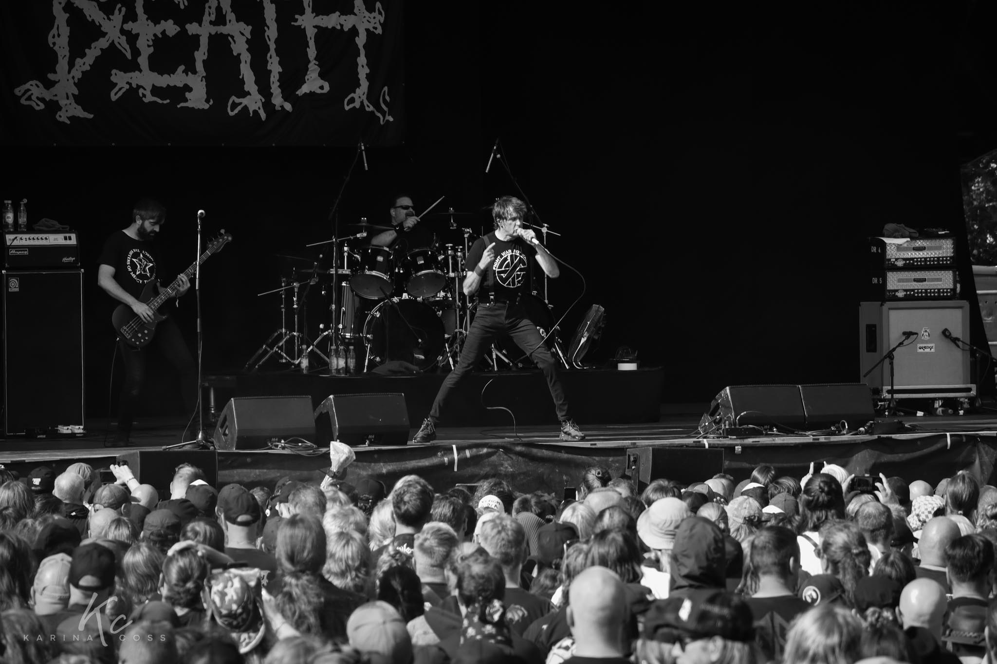 Sin dar mucho respiro, en el escenario principal llegó el turno de Napalm Death, una institución absoluta del grindcore. Lo suyo no es solo música, sino una declaración política, social y visceral. Barney Greenway, con su energía inagotable, no dejó de moverse de un lado al otro, su persona en sí es completamente cautivadora, tras ellos colgaba un tela pequeña con el nombre de la banda, como una declaración total de que no necesitan ninguna parafernalia, un recordatorio de que, pese al paso de los años, Napalm Death sigue siendo un terremoto en vivo, uno que no se desgasta, sino que se intensifica.