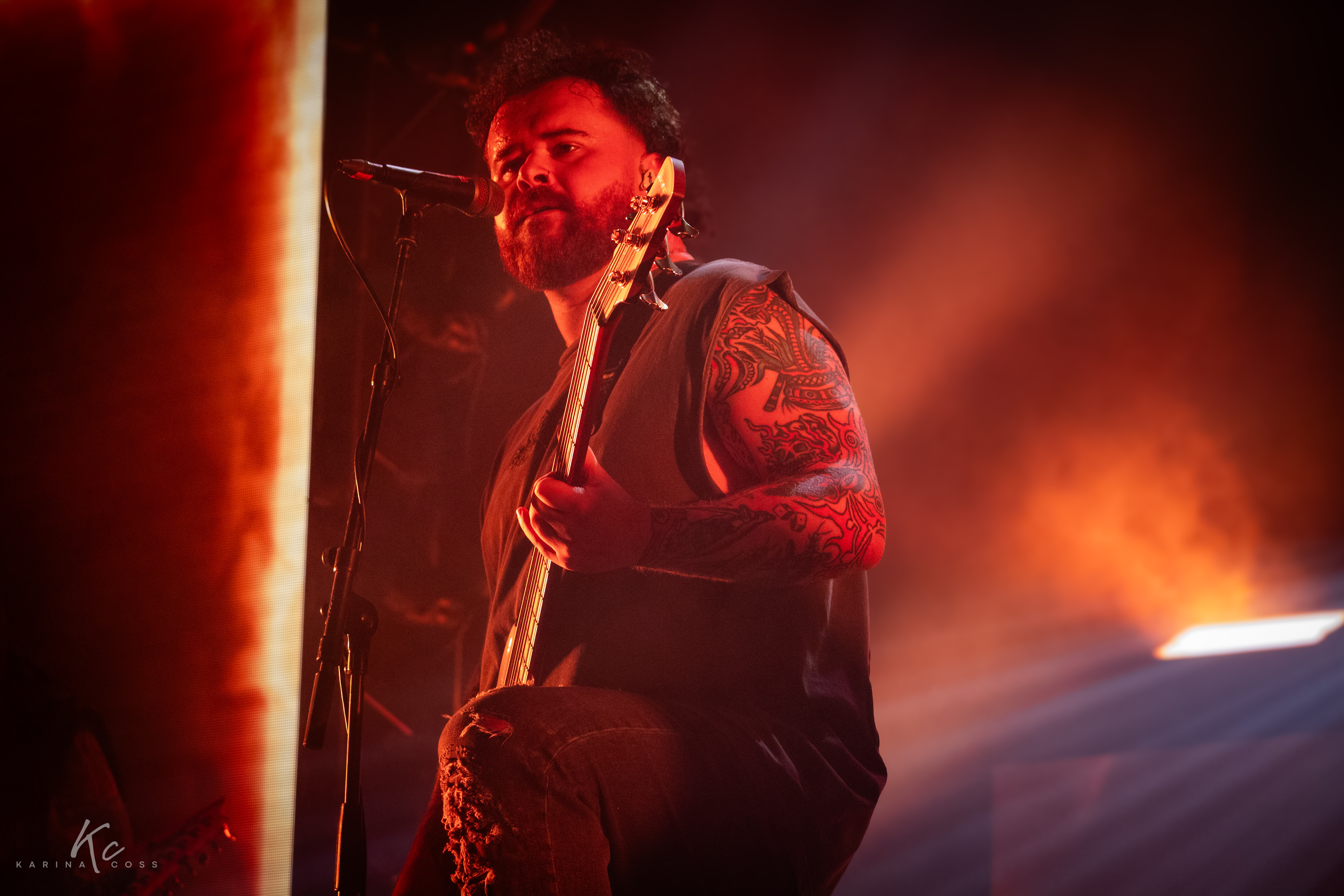 Antes de “Glenwood”, el vocalista se permitió un momento de vulnerabilidad: dedicó la canción a quienes han tenido que abandonar lo que llamaban hogar en busca de paz. Y ahí ocurrió algo que el metal sabe hacer mejor que casi cualquier otro lenguaje: convertir la violencia sonora en refugio. Entre guturales imposibles, riffs afilados y un público entregado, la catarsis fue real.