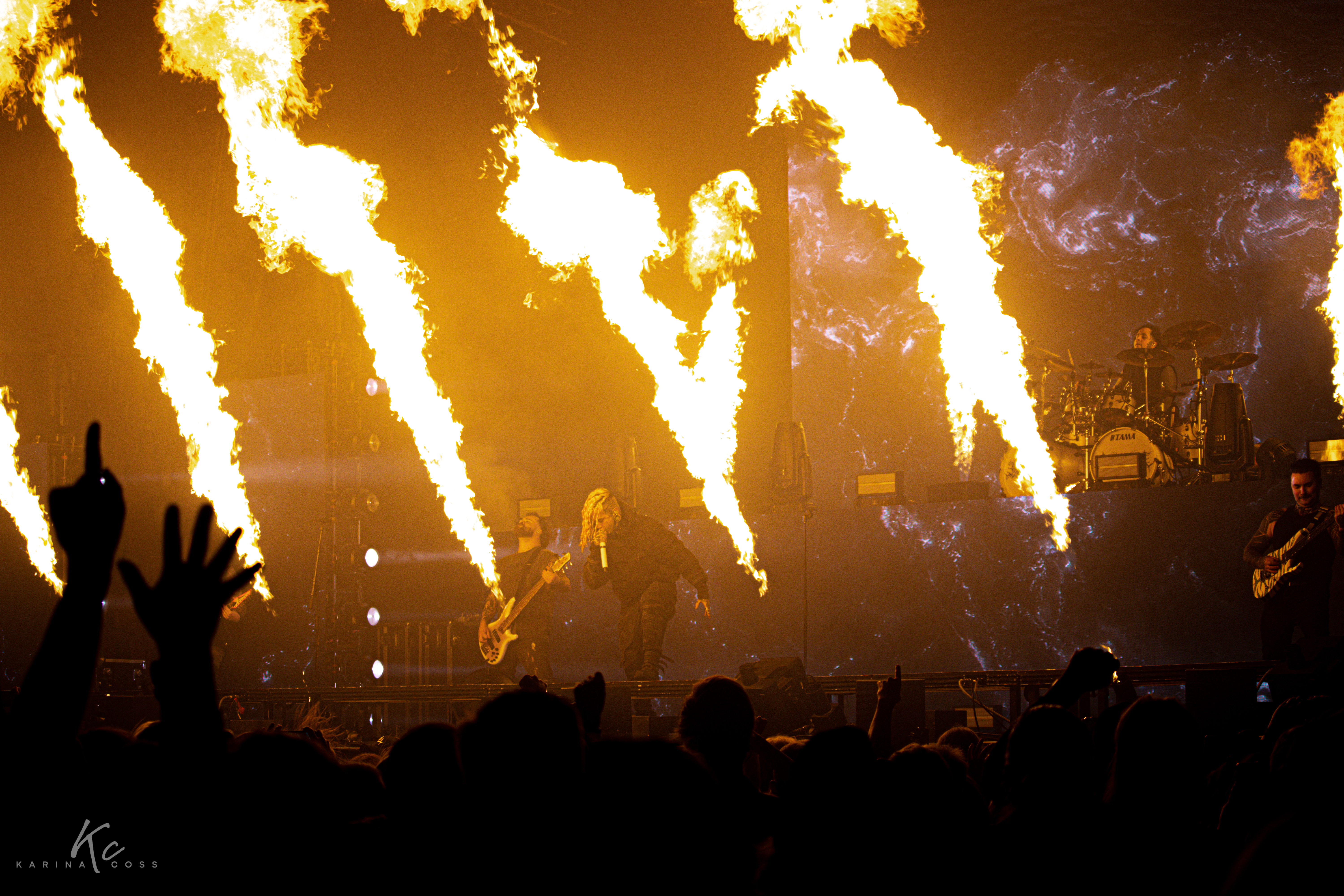 Lo suyo no fue simplemente un cierre, sino una toma de territorio. Pirotecnia, llamaradas extendiéndose por el escenario, visuales envolventes y una precisión indiscutible construyeron un espectáculo diseñado para arenas. Pero el verdadero eje gravitacional fue Will Ramos: técnicamente descomunal, escénicamente magnético, plenamente consciente del momento que atraviesa su banda.