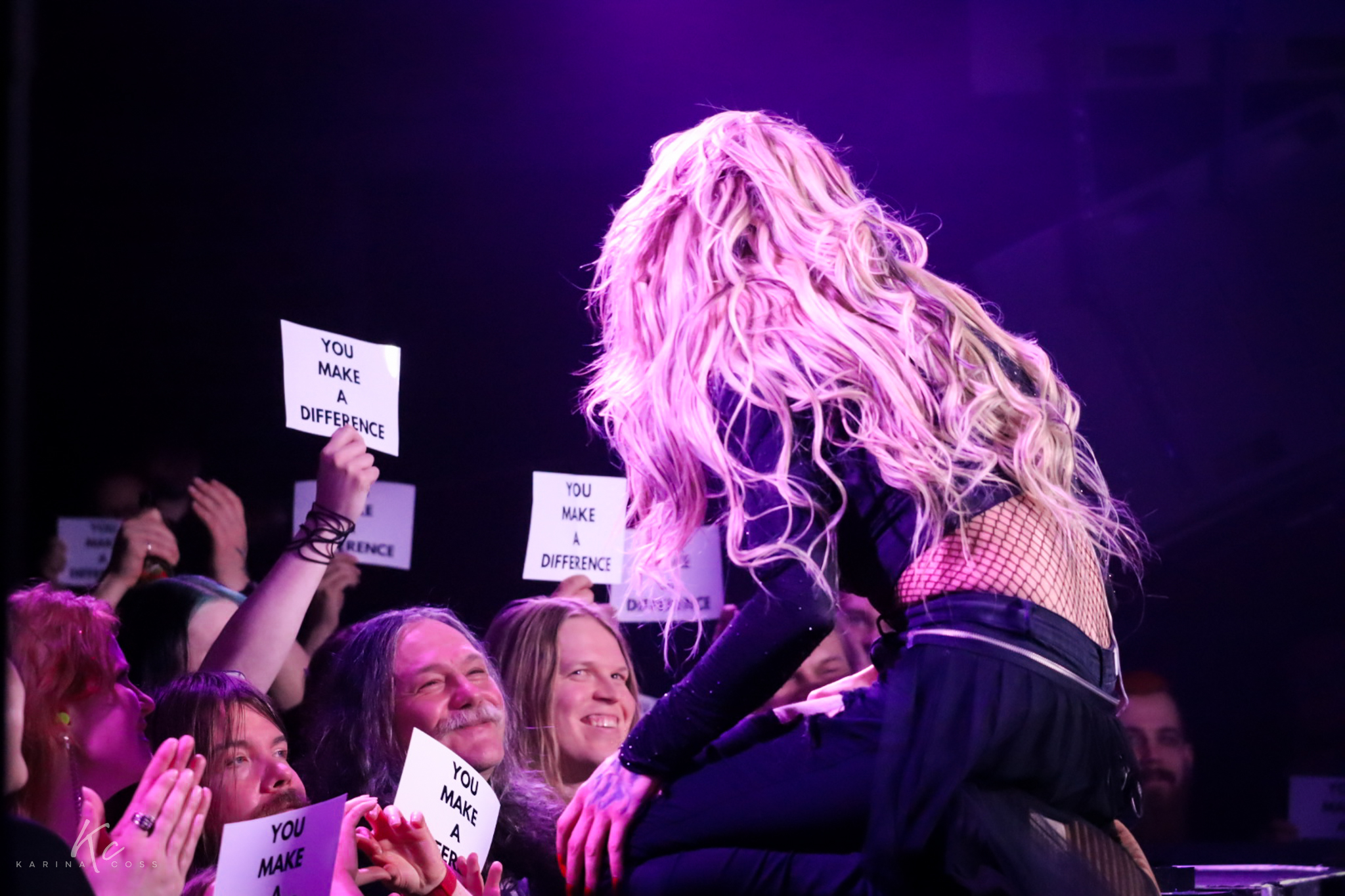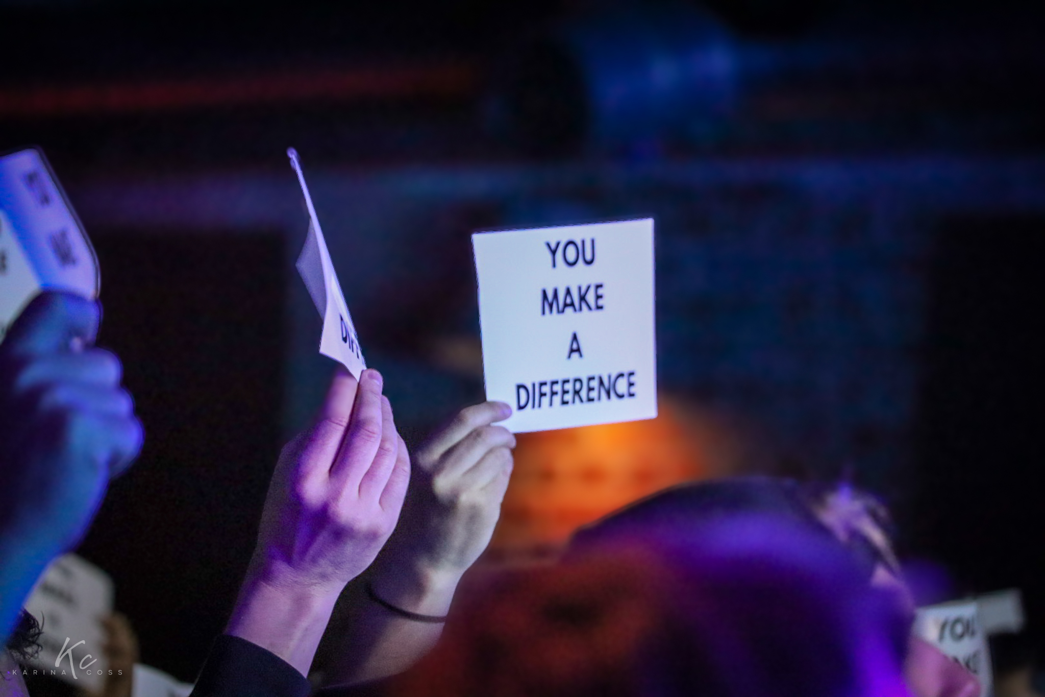 The crowd answered immediately. Dozens of signs went up: “You Make a Difference.”